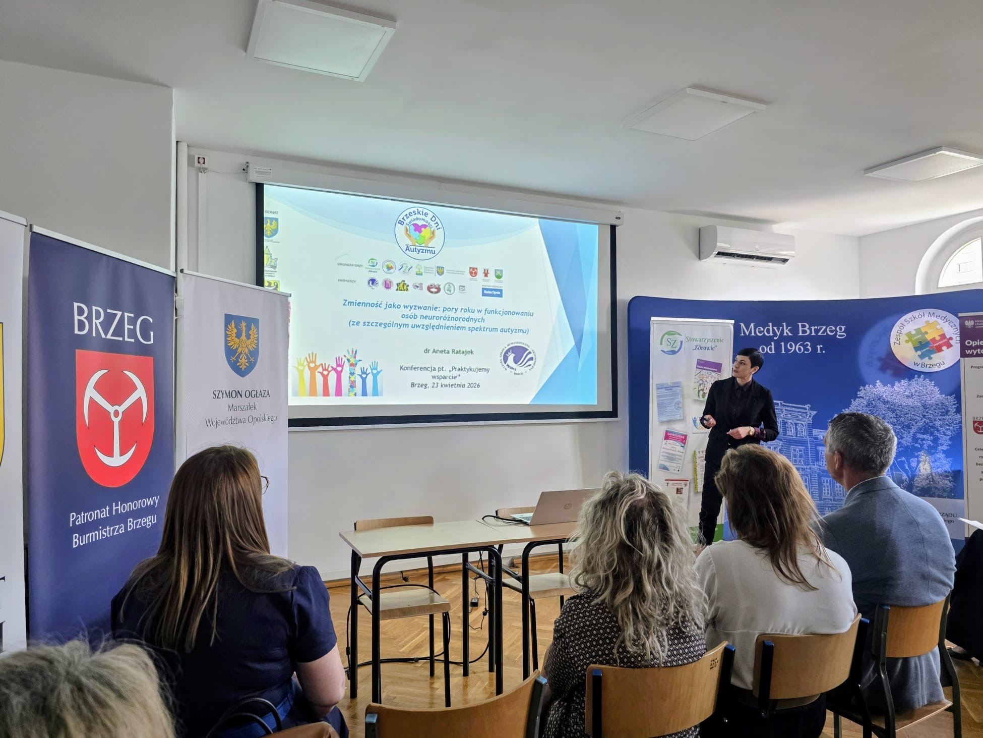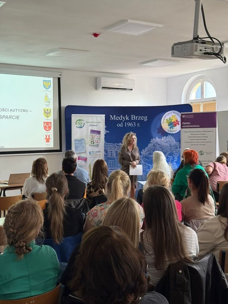 23 kwietnia 2026 roku w auli Zespołu Szkół Medycznych w Brzegu odbyła się IV Konferencja Świadomości Autyzmu „Praktykujmy wsparcie”, zorganizowana w ramach Brzeskich Dni Świadomości Autyzmu. Wydarzenie zgromadziło nauczycieli, specjalistów, rodziców oraz – co miło nam podkreślić – Studentów naszej uczelni, którym bliska jest idea świadomego wspierania osób w spektrum autyzmu. W Konferencji wzięli również udział Dziekan WSHE w Brzegu dr Aneta Ratajek oraz Dziekan WSHE w Brzegu filia w Tychach dr Wojciech Ratajek.