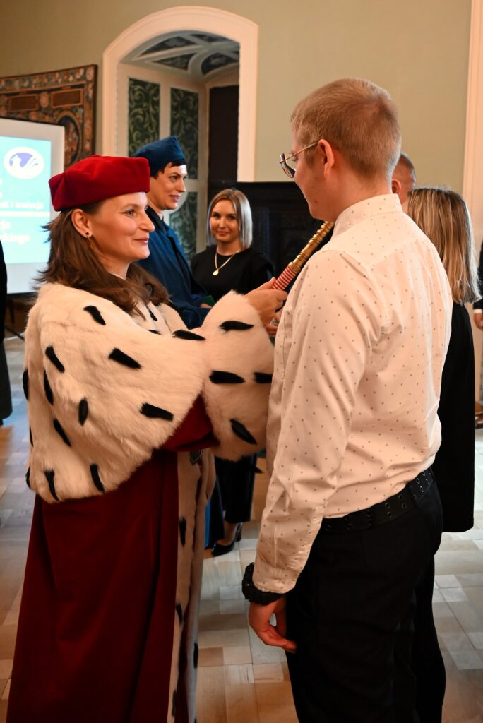 Następnie uroczystej immatrykulacji studentów I roku dokonała Rektor, Jej Magnificencja dr Aleksandra Aszkiełowicz oraz Dziekan dr Aneta Ratajek.
