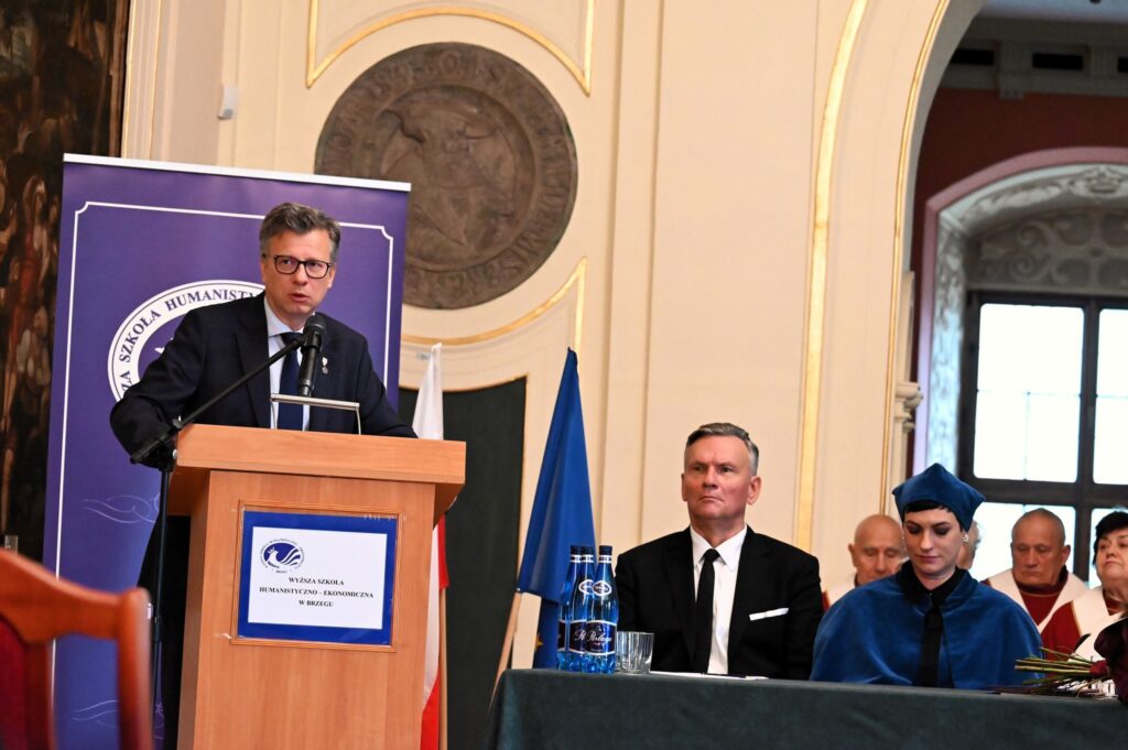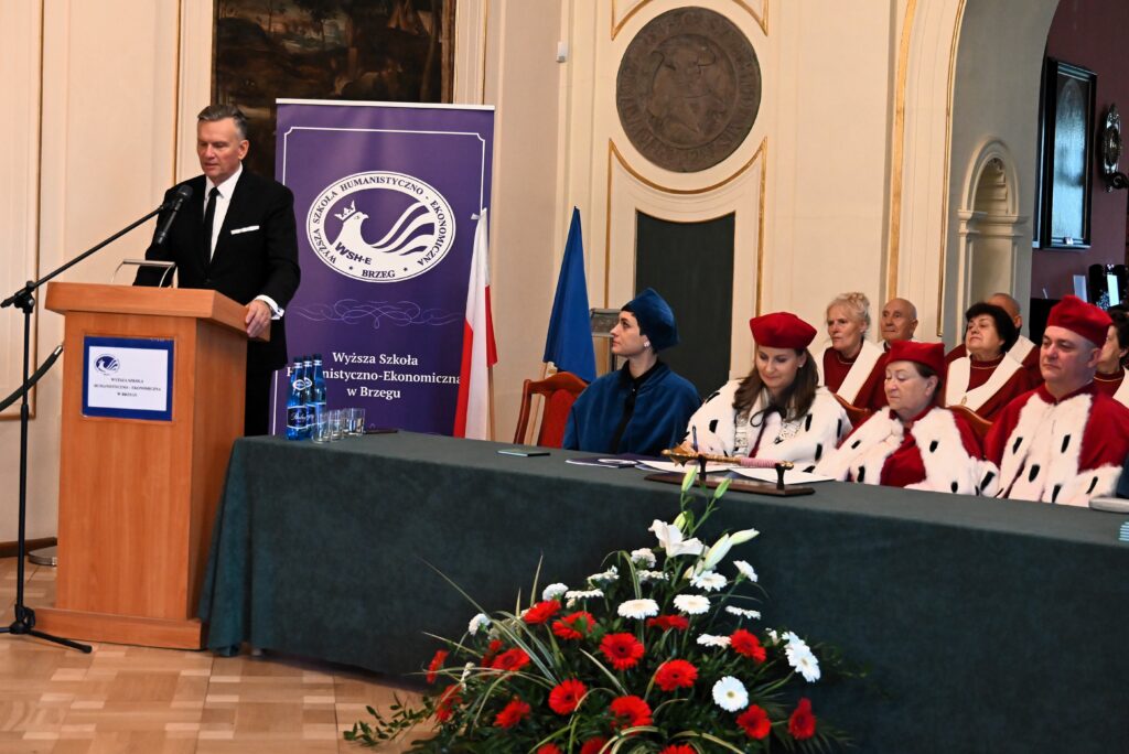 11 października tradycyjnie w Sali Pinottiego Muzeum Piastów Śląskich w Brzegu, odbyła się uroczysta inauguracja roku akademickiego 2025/2026. Uroczystość, swoją obecnością zaszczycili przedstawiciele administracji rządowej i samorządowej m.in. Radny Sejmiku Województwa Opolskiego Tomasz Zeman, Starosta Powiatu Brzeskiego Pan Jacek Monkiewicz, Burmistrzyni Brzegu Pani Violetta Jaksólska-Palus oraz reprezentanci środowiska akademickiego z zaprzyjaźnionych uczelni. Obecni byli również przedstawiciele instytucji i organizacji powiatu brzeskiego, a także przedstawiciele służb mundurowych.